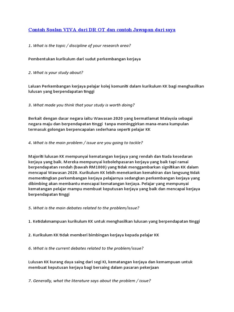 Contoh Soalan Viva Dari Dr Ot Dan Contoh Jawapan Dari Saya Pdf